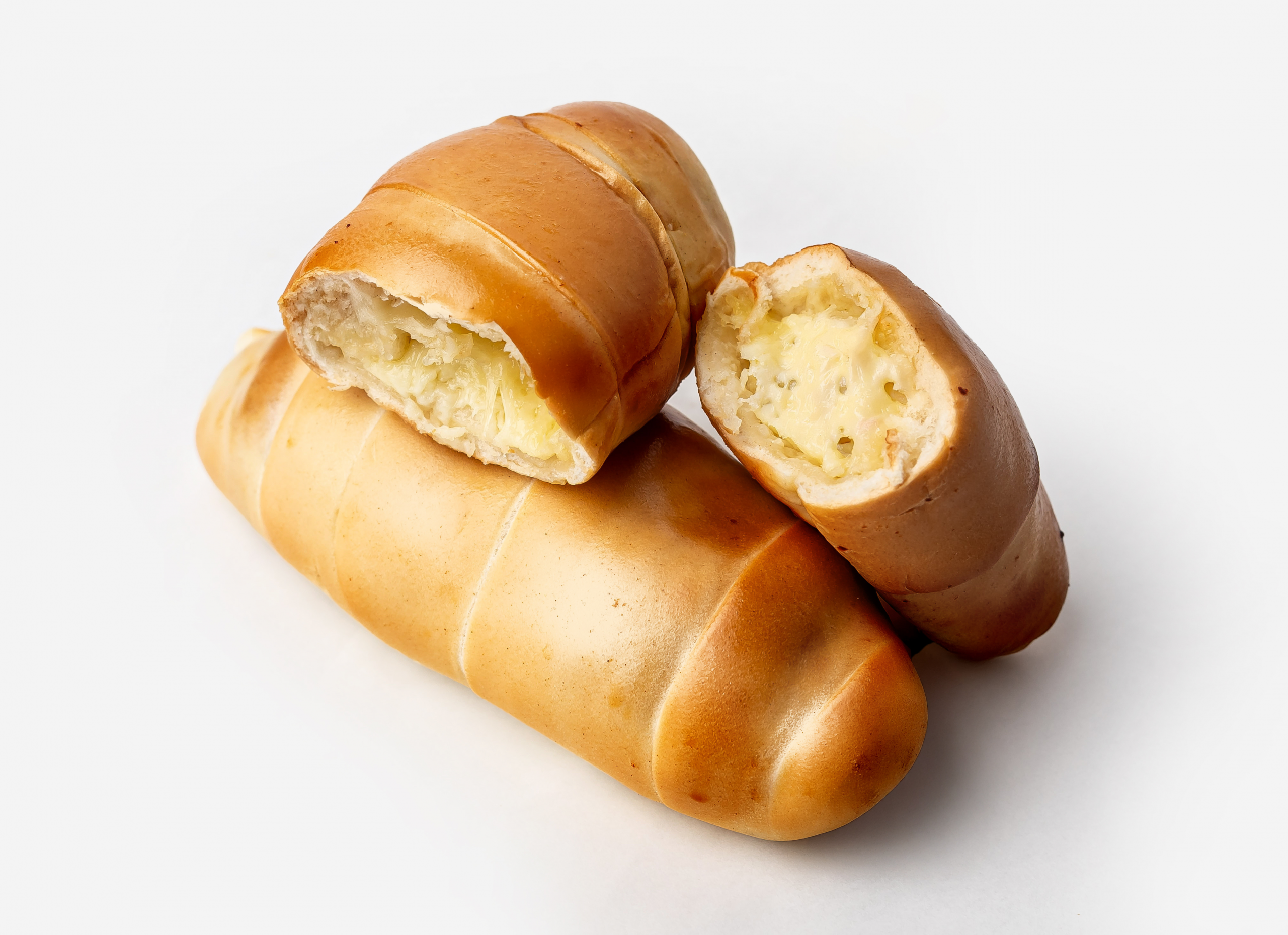 Cachitos precocidos a granel, rellenos de queso costeño.